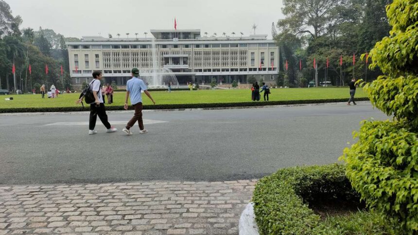次に向かうのは、Phở Hòa Pasteurから車で約10分の「統一会堂」です。南ベトナムの大統領官邸として使われた建物で、内部の見学も可能です。
